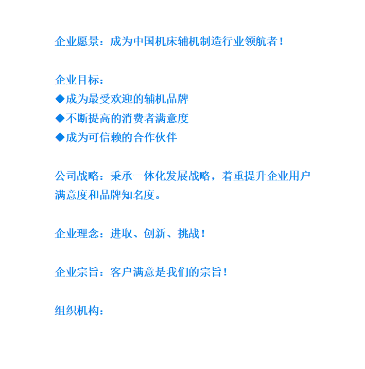 “客戶滿意是我們的宗旨”,更是大連莊河當(dāng)代輔機(jī)制造有限公司的服務(wù)宗旨。企業(yè)將秉承著一體化發(fā)展戰(zhàn)略,著重提升企業(yè)用戶滿意度和品牌知名度,加強(qiáng)與社會(huì)同仁和新老朋友的緊密合作,同舟共濟(jì),眾志成城,使當(dāng)代輔機(jī)真正成為機(jī)床輔機(jī)行業(yè)的領(lǐng)航者!